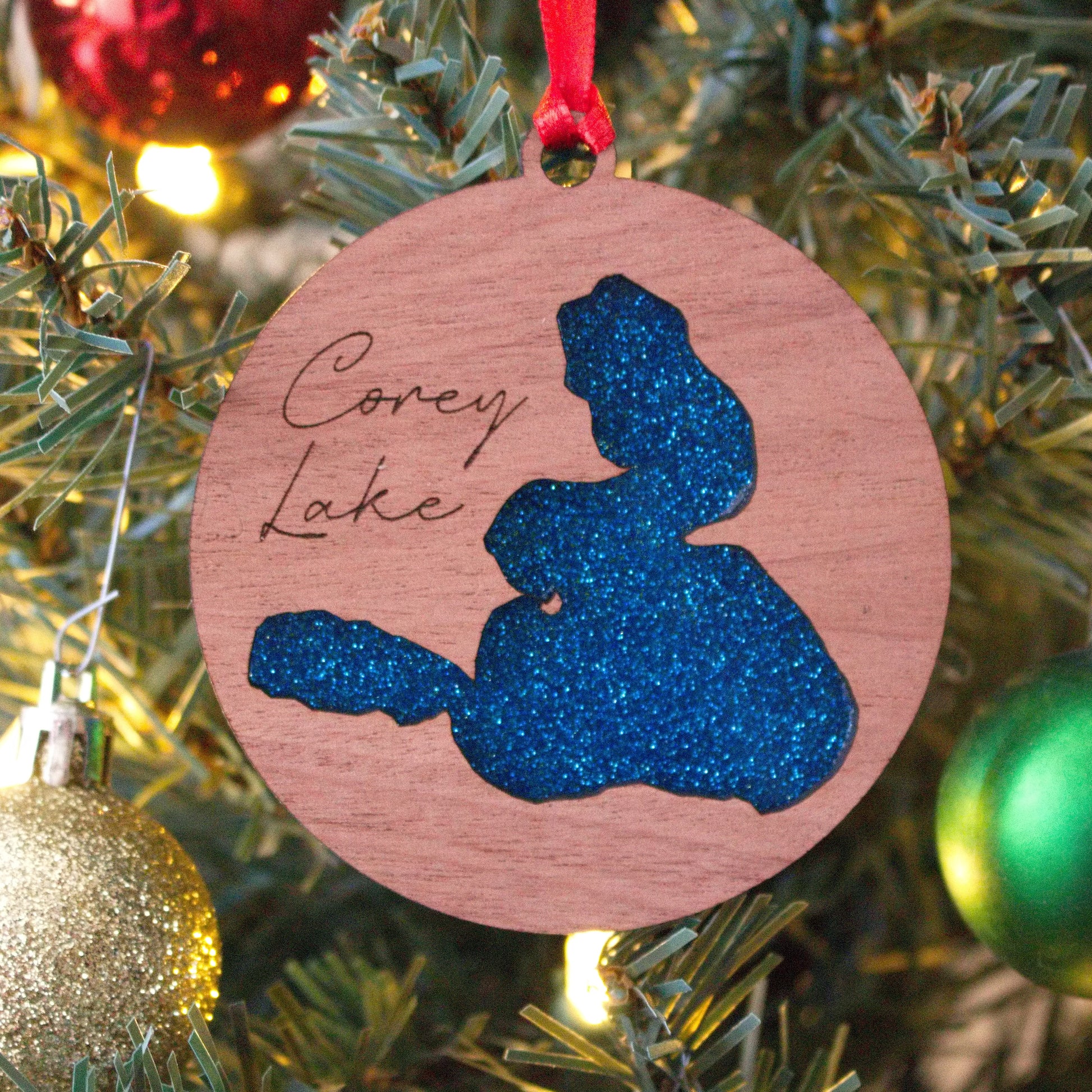 Glitter Acrylic and Wood Christmas Ornament Lake (Michigan)
